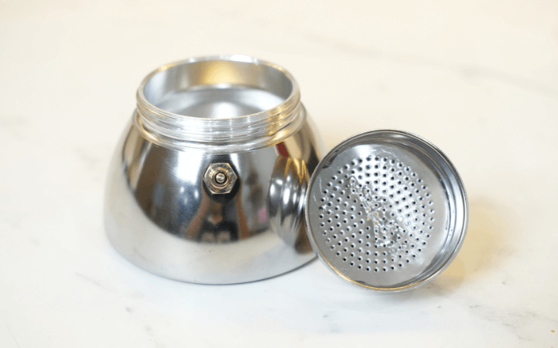 Vật liệu truyền thống: Phần ấm (khoang chứa cà phê bên trên) vẫn được làm từ nhôm cao cấp. Đây là vật liệu truyền thống mà Bialetti tin dùng, vì nó giúp hình thành một lớp "patina" (lớp màng cà phê tự nhiên) theo thời gian, góp phần tạo nên hương vị cà phê Moka đặc trưng mà không vật liệu nào thay thế được.