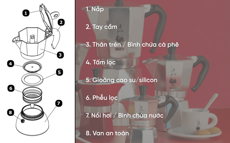 Chiếc ấm nhôm hình bát giác đặc trưng này đã lần đầu tiên mang trải nghiệm cà phê đậm đà, phong phú (tương tự như espresso) từ các quán bar Ý về thẳng căn bếp gia đình. Nó nhanh chóng trở thành một vật dụng không thể thiếu, hiện diện trong hầu hết mọi gia đình Ý.