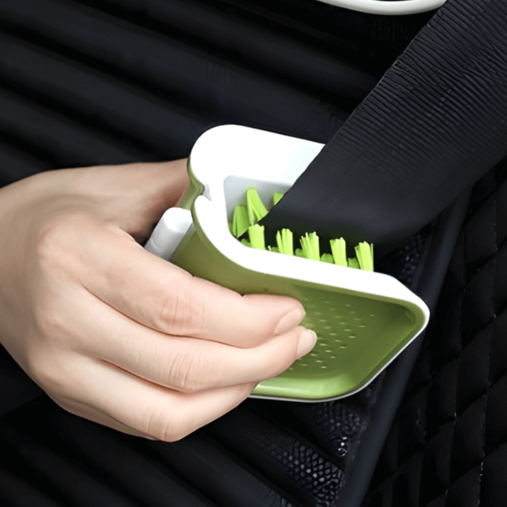 Bàn chải được thiết kế độc đáo bao quanh lưỡi dao, cho phép làm sạch cả hai mặt cùng một lúc. Điều này giúp tiết kiệm thời gian và đảm bảo dao luôn được vệ sinh kỹ lưỡng.