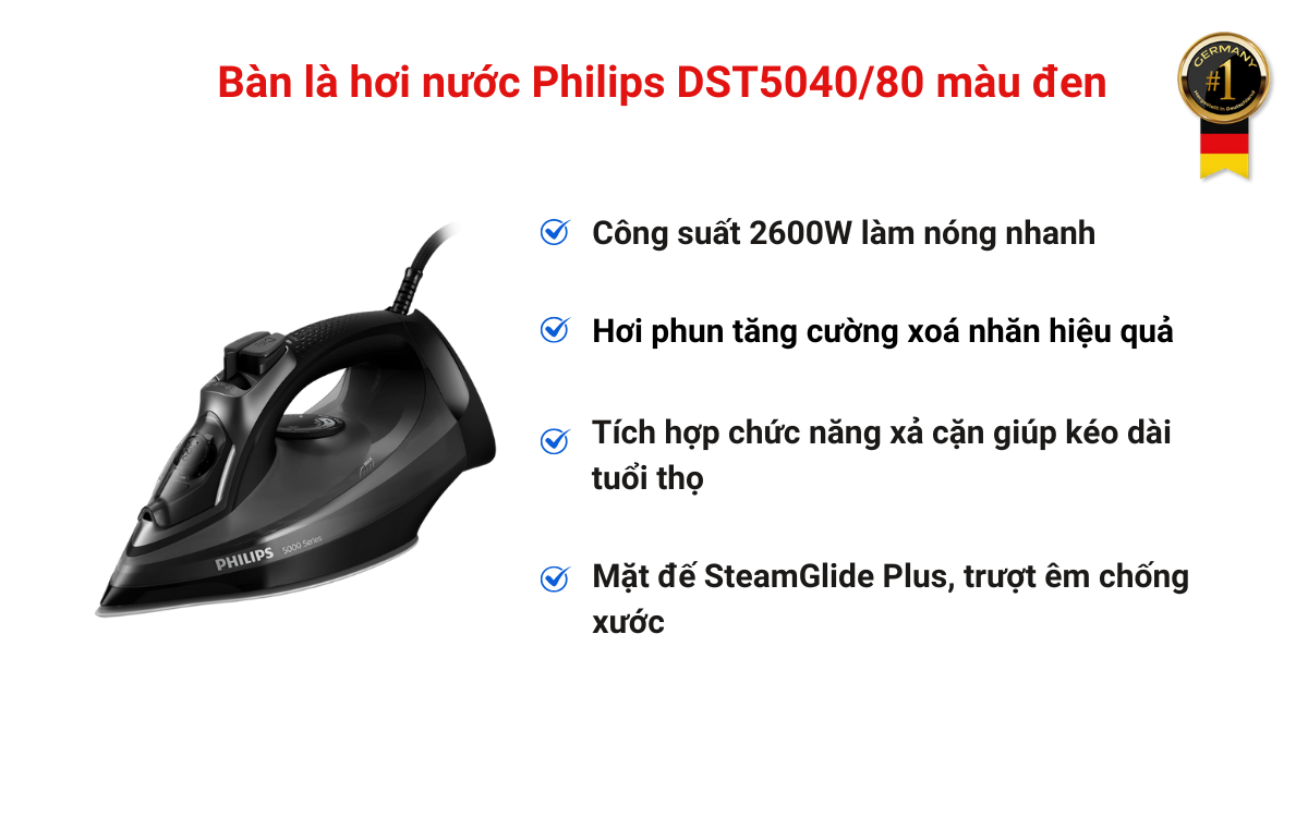 Tính năng nổi bật của Bàn là hơi nước Philips DST5040/80 màu đen