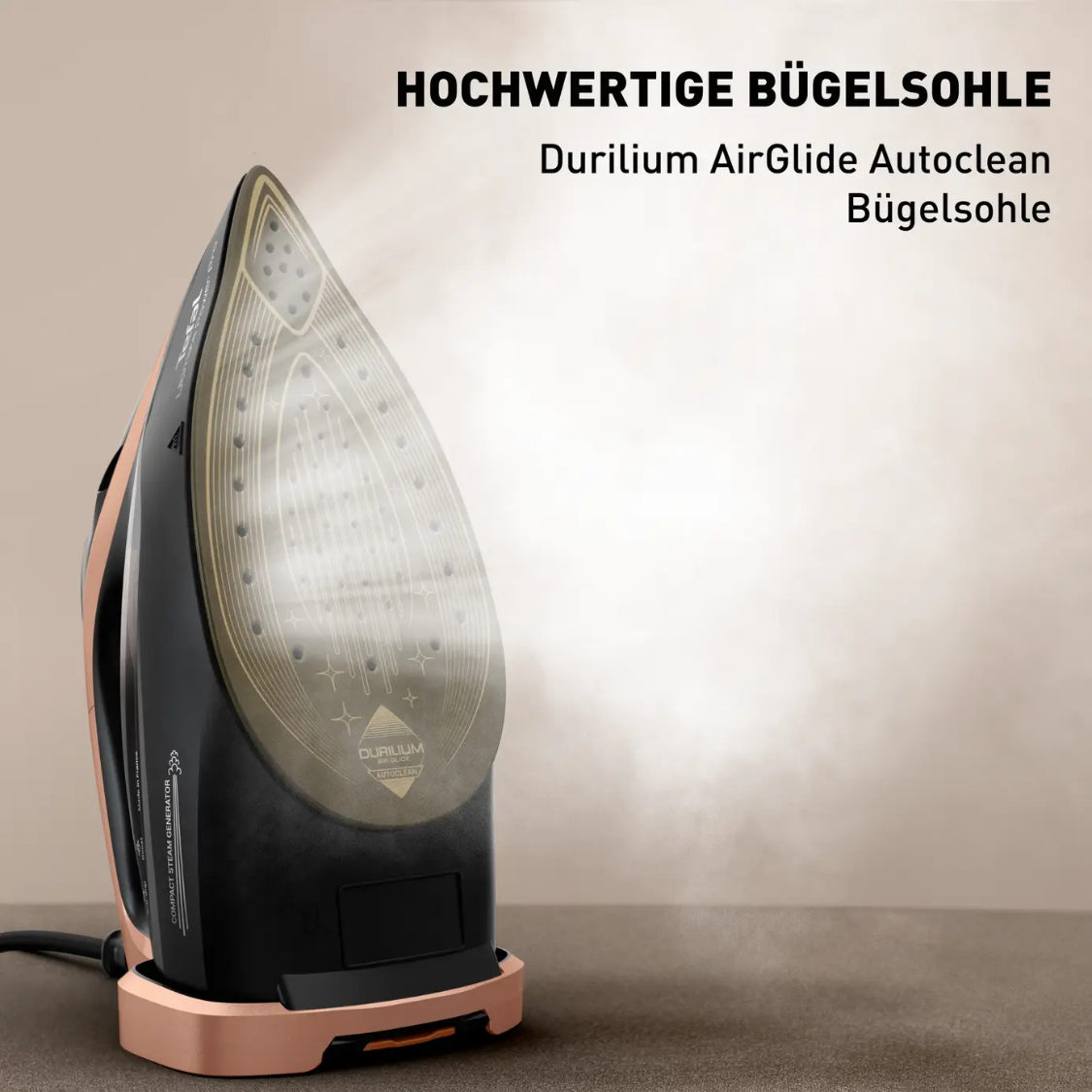 Tefal trang bị cho FV9E50E0 mặt đế Durilium AirGlide – công nghệ mặt đế độc quyền nổi tiếng với khả năng lướt siêu mượt, cho cảm giác “nhẹ tay” ngay cả khi ủi số lượng lớn quần áo. Nhờ cấu trúc bề mặt đặc biệt và hệ thống rãnh thoát hơi khoa học, hơi nước được phân bổ đều trên toàn bộ mặt đế, giúp sợi vải nhanh mềm, nếp nhăn nhanh biến mất mà không cần dùng nhiều lực.