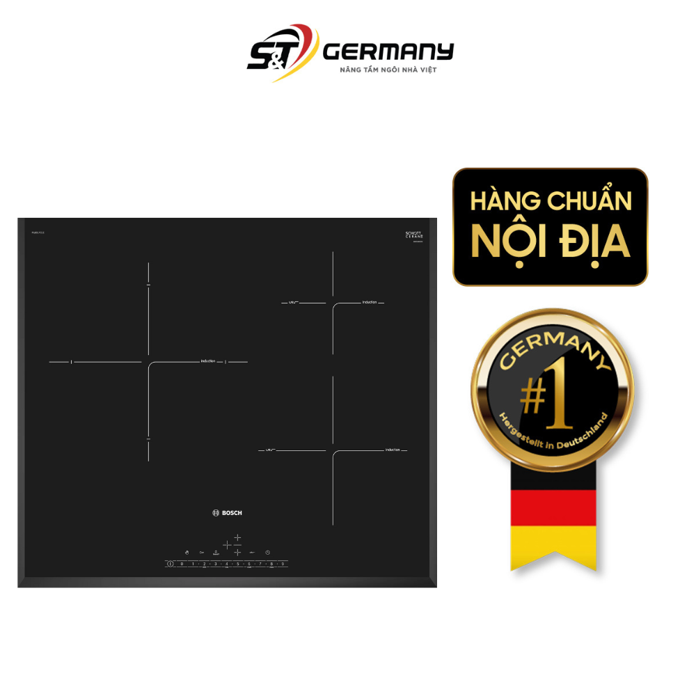 Thiết kế hiện đại Với kiểu dáng sang trọng và hiện đại, bếp từ BOSCH PIJ651FC1E sẽ trở thành một điểm nhấn cho không gian bếp của bạn. | Điều khiển cảm ứng Bếp từ BOSCH PIJ651FC1E được trang bị điều khiển cảm ứng, giúp người dùng dễ dàng điều chỉnh nhiệt độ và chức năng của bếp. | Chức năng hẹn giờ Với tính năng này, người dùng có thể thiết lập thời gian nấu ăn để bếp tự động tắt sau khi hoàn thành. |