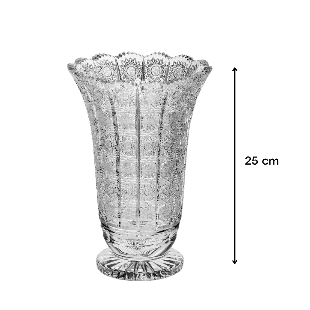 Sản phẩm sở hữu những chi tiết cắt khắc tinh xảo được mài dũa thủ công, tạo hiệu ứng phản chiếu ánh sáng rực rỡ như hàng nghìn tia sáng nhỏ. Ngoài ra, chân đế vững chắc là điểm nhấn khác biệt, vừa đảm bảo cân bằng, vừa tôn lên dáng vẻ kiêu sa của bình.