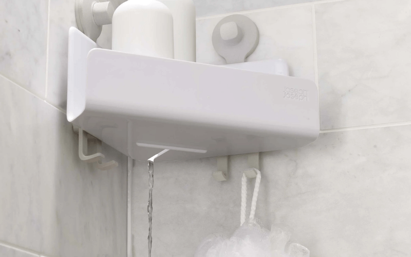 Khi bạn đặt xà phòng, bọt biển hay các vật dụng khác lên kệ, hệ thống thoát nước sẽ ngăn chặn tình trạng đọng nước, giảm thiểu sự phát triển của vi khuẩn và nấm mốc. Điều này đặc biệt quan trọng trong môi trường ẩm ướt như phòng tắm, nơi mà vi khuẩn và nấm mốc có thể phát triển nhanh chóng.