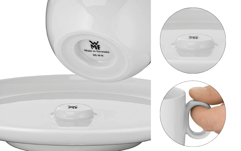 Dung tích 170ml - Chuẩn châu Âu cho Cafe Creme Thiết kế chắc chắn, ổn địnhBộ 2 tách WMF Barista Cafe Creme sở hữu thiết kế chống đổ thông minh: đáy hũ khớp với phần nhô trên đĩa lót, giúp cố định chắc chắn và không trượt ngay cả khi bàn rung hay di chuyển cả bộ cùng lúc Đĩa lót cũng có viền cao (high rim) được thiết kế đặc biệt để chống tràn - nếu có giọt cà phê hay sữa bọt chảy ra, chúng sẽ được giữ lại trong đĩa thay vì dơ bẩn mặt bàn. Viền cao này còn giúp bạn cầm đĩa dễ dàng hơn mà không sợ tay trượt. Tay cầm tách được thiết kế theo nguyên lý ergonomic (công thái học) - hình dáng cong vừa vặn với ngón tay, bề mặt mịn màng dễ chịu khi cầm. Bạn có thể cầm tách trong thời gian dài mà không thấy mỏi tay.