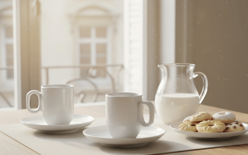 WMF - 170 Năm Tiên Phong Dụng Cụ Nhà Bếp Đức Chất Liệu Sứ trắng cao cấp - Tinh khiết từng chi tiếtBộ 2 tách WMF Barista Espresso được chế tác từ sứ trắng cao cấp (premium porcelain) sản xuất tại Đức theo tiêu chuẩn nghiêm ngặt của châu Âu. Đây không phải loại sứ thông thường - mỗi sản phẩm trải qua quy trình nung ở nhiệt độ cao tạo nên độ cứng vượt trội, bề mặt không xốp, không thấm màu và mùi. Sứ WMF có độ trắng tinh khiết đặc biệt, tạo nên vẻ đẹp thanh lịch và sang trọng. Chất liệu này hoàn toàn trung tính về mùi vị, không ảnh hưởng đến hương thơm tự nhiên của đường hay sữa tươi.