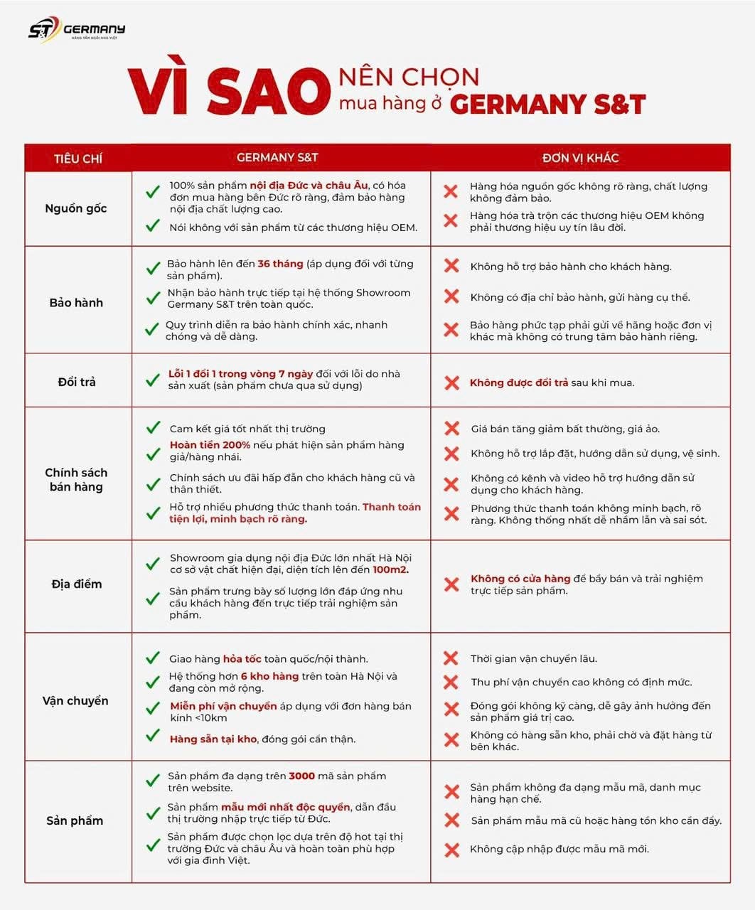 Hoặc Quý khách có thể đến trải nghiệm trực tiếp sản phẩm tại hệ thống showroom của Germany S&T trên toàn quốc.