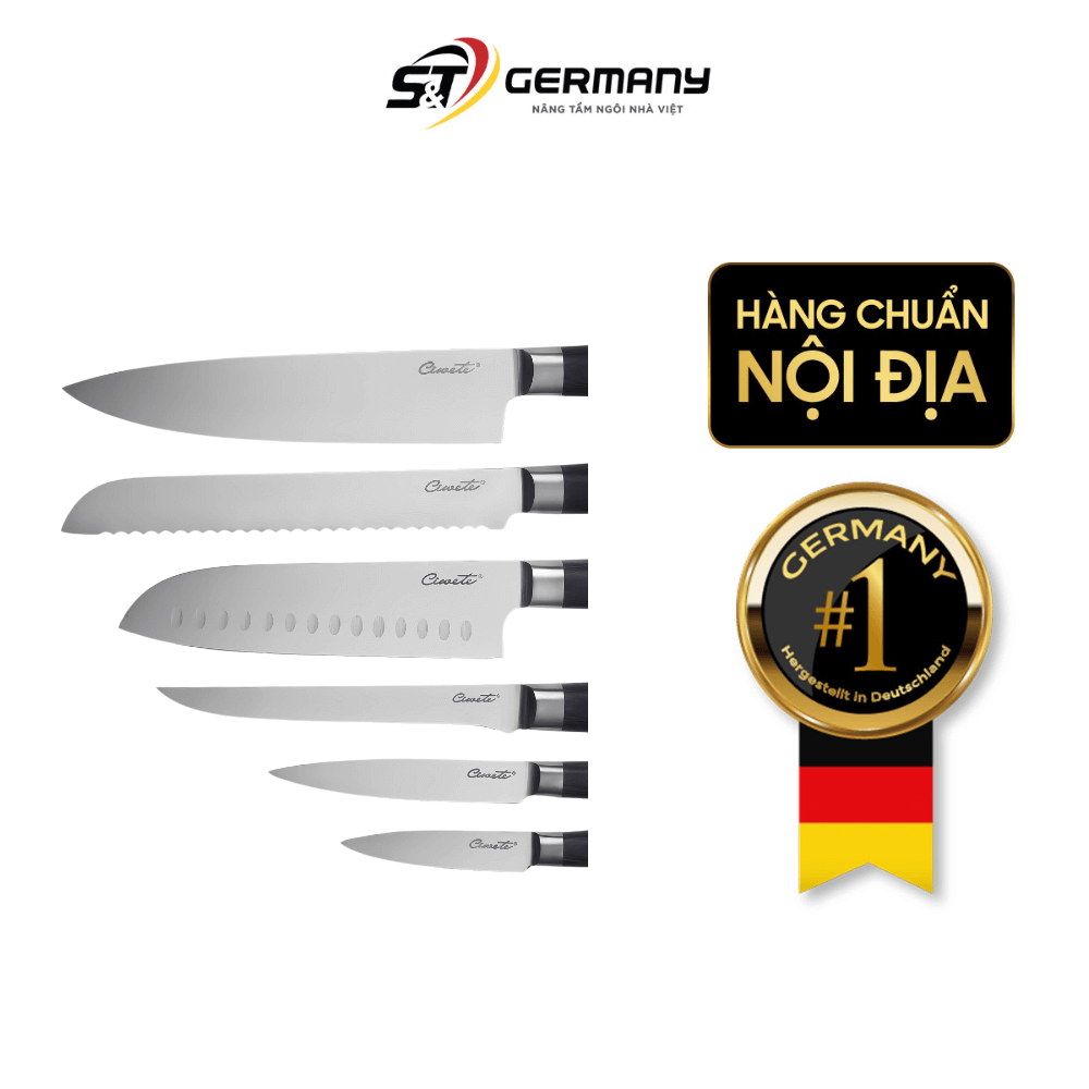 Bạn đang tìm kiếm một bộ dao đa năng, sắc bén và bền bỉ để phục vụ cho nhu cầu nấu nướng hàng ngày? Bộ dao cao cấp này sẽ đáp ứng mọi yêu cầu của bạn. Với thiết kế thông minh và chất liệu cao cấp, bộ dao sẽ giúp bạn thực hiện mọi công việc bếp núc một cách dễ dàng và nhanh chóng. Hãy để Ciwete đồng hành cùng bạn tạo nên những bữa ăn ngon! Cùng Germany S&T khám phá chi tiết về Bộ hộp quà set dao cao cấp 6 món Ciwete ngay tại đây!