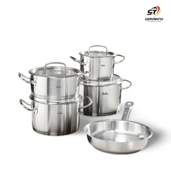 Bộ nồi 5 món Fissler được làm hoàn toàn bằng chất liệu thép không gỉ 18/10