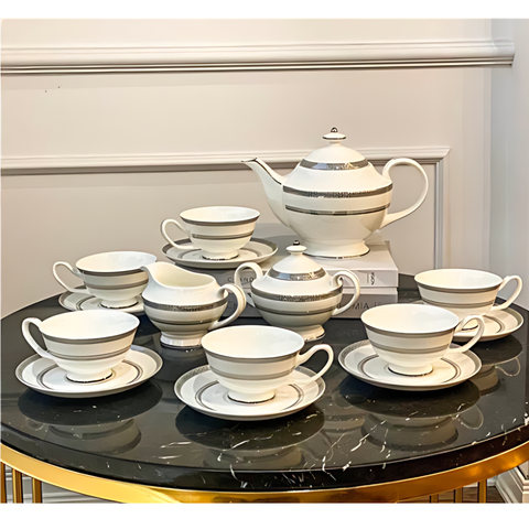 Bộ trà cà phê Imperial London size to bạch kim là một tác phẩm nghệ thuật đích thực, kết hợp giữa sự tinh tế của thiết kế và chất liệu sứ xương cao cấp, tạo nên một sản phẩm vô cùng đẳng cấp và sang trọng. Bộ sản phẩm này không chỉ là nơi để pha trà cà phê mà còn là điểm nhấn trang trí hoàn hảo cho không gian sống và làm việc của bạn.