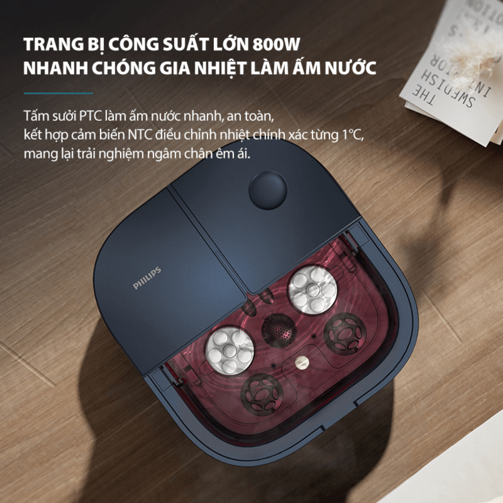Khi kết hợp cùng muối ngâm hoặc tinh dầu thảo mộc, công nghệ này giúp cơ thể hấp thu dưỡng chất hiệu quả hơn, mang lại cảm giác thư giãn rõ rệt sau mỗi lần sử dụng. Đây là phương pháp chăm sóc tự nhiên, hỗ trợ cải thiện chất lượng giấc ngủ và giảm căng thẳng tinh thần. Nhờ đó, Philips PPM6504 đặc biệt phù hợp với người lớn tuổi, nhân viên văn phòng hoặc những người thường xuyên bị lạnh chân, cần một giải pháp thư giãn an toàn và dễ duy trì mỗi ngày.
