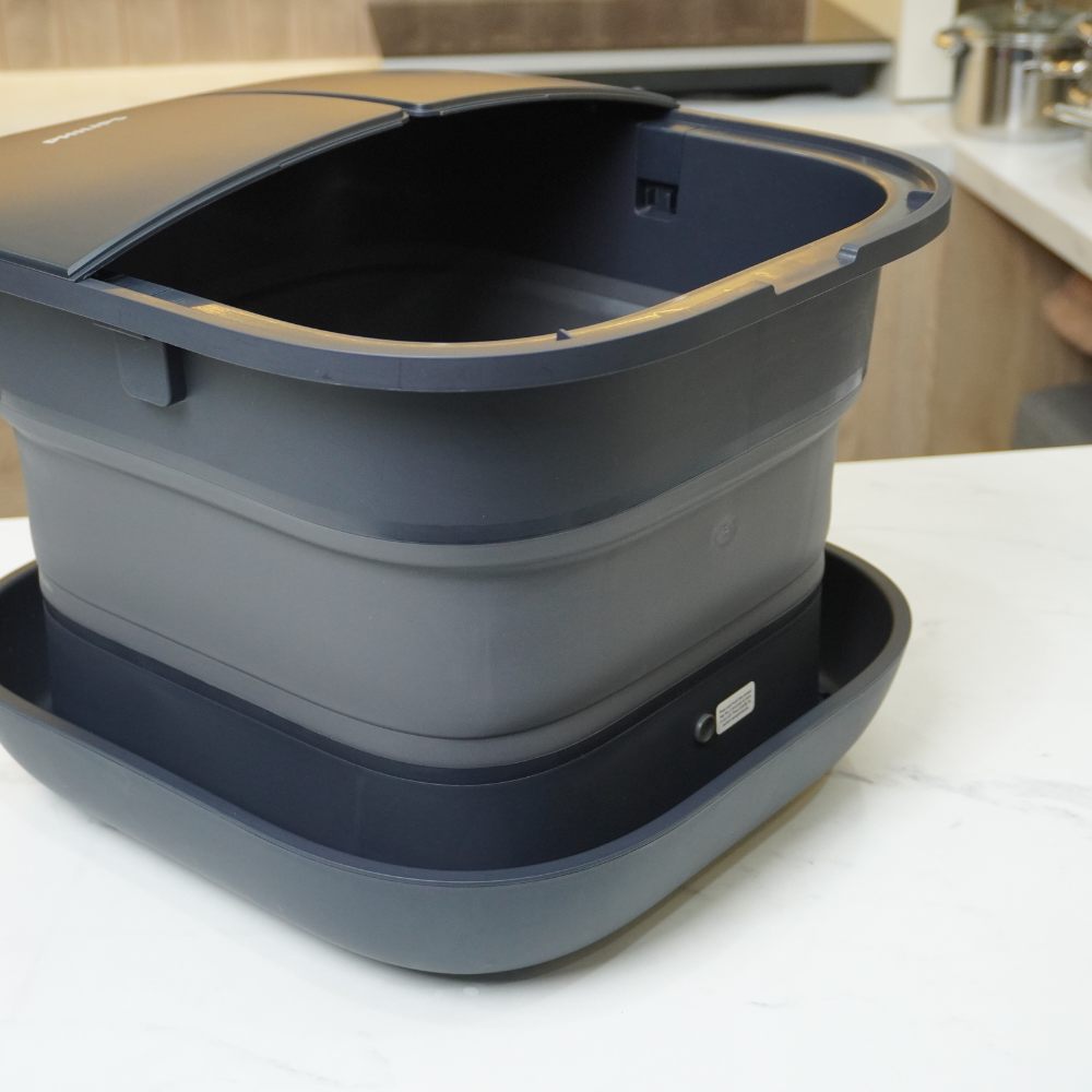 Thiết kế gập gọn thông minh cho phép thu nhỏ kích thước tới 51% (từ 32.25cm xuống chỉ còn 15.7cm), đảm bảo tính linh hoạt và giúp việc cất giữ trở nên thuận tiện hơn. Khi dựng đứng, bồn chỉ chiếm khoảng 0.15m², phù hợp với không gian sống hiện đại, nhất là các căn hộ nhỏ hoặc khu vực có diện tích hạn chế.