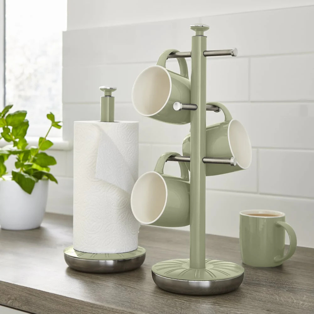 Cây treo cốc và dụng cụ để giấy đứng Swan Retro màu xanh là điểm nhấn tinh tế cho mọi căn bếp với thiết kế mang phong cách cổ điển, màu xanh độc đáo cùng các đường sọc dọc trang nhã tạo sự hài hòa, sáng bừng mọi không gian, từ hiện đại đến truyền thống.