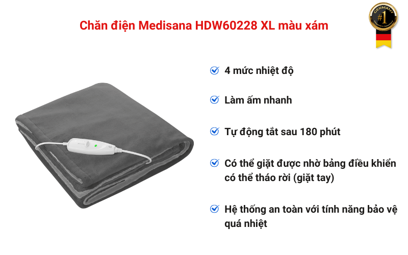 Chăn điện Medisana HDW60228 XL màu xám – Lựa Chọn Hoàn Hảo Cho Những Ngày Đông