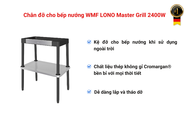 Chân đỡ cho bếp nướng WMF LONO Master Grill 2400W là sản phẩm không thể thiếu cho những ai yêu thích các thiết bị điện gia dụng tiện lợi và hiệu quả. Với chất liệu cao cấp, thiết kế tinh tế và khả năng chịu được mọi điều kiện thời tiết, đây sẽ là một lựa chọn hoàn hảo cho ngôi nhà và đời sống hiện đại của bạn. Đặt hàng ngay tại Germany S&T để sở hữu với mức giá tốt nhất!