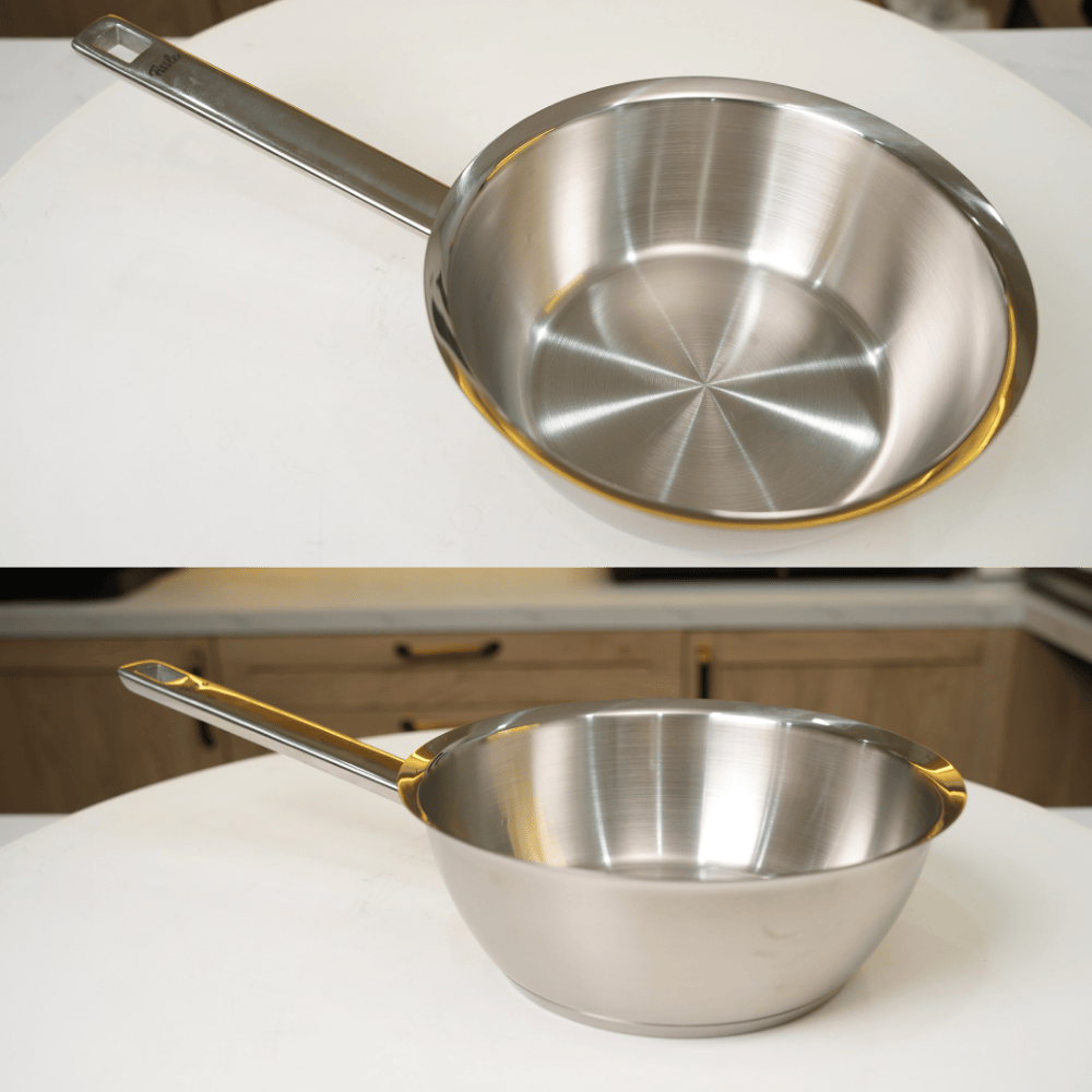 Chảo sâu lòng Fissler Profi Original 20cm được làm từ thép không gỉ 18/10 cao cấp, mang lại độ bền vượt trội, khả năng chống trầy xước và chống va đập tốt. Chất liệu này không chỉ an toàn cho sức khỏe mà còn giúp duy trì vẻ sáng bóng lâu dài. Bề mặt chảo được phủ satin bóng mờ, giúp hạn chế bám vân tay và dễ dàng vệ sinh, giữ được vẻ đẹp tinh tế theo thời gian.