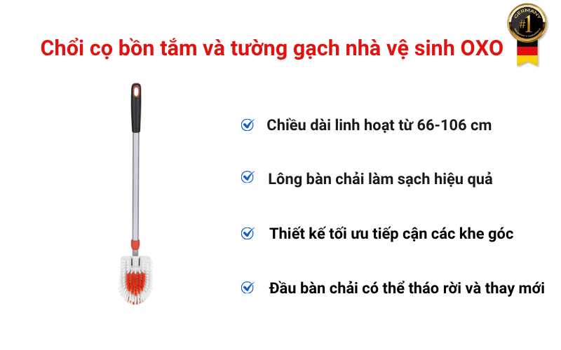 Với thiết kế thông minh và khả năng làm sạch vượt trội, chổi cọ bồn tắm và tường gạch OXO không chỉ giúp công việc vệ sinh trở nên nhẹ nhàng hơn mà còn góp phần giữ cho không gian nhà tắm luôn sạch sẽ, sáng bóng. Một lựa chọn nhỏ nhưng mang lại sự khác biệt lớn trong trải nghiệm chăm sóc tổ ấm.