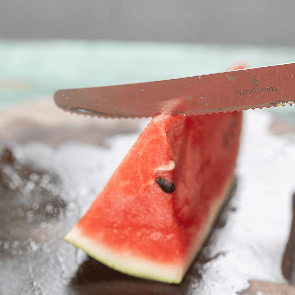 Đặc biệt, dao sở hữu lưỡi răng cưa sắc bén kết hợp tay cầm công thái học, giúp thao tác cắt, thái nhỏ hay thái hạt lựu trở nên nhẹ nhàng và chính xác hơn. Kiểu dáng răng cưa hỗ trợ cắt các loại rau của và trái cây mềm mà không làm nát hay dập thực phẩm. Ngoài ra, dao còn phù hợp để thái thịt nguội, xúc xích hoặc bánh mì nhỏ với đường cắt gọn gàng.