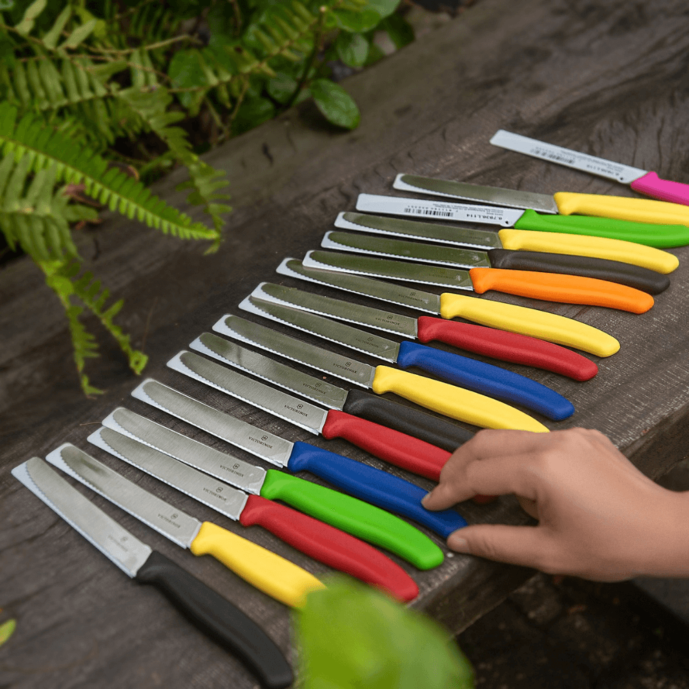 Không chỉ nổi bật ở độ sắc bén chuẩn Thụy Sĩ, dao đa năng Victorinox 11cm Swiss Classic còn ghi điểm với bảng màu đa dạng, phù hợp nhiều phong cách bếp và thói quen sử dụng. Mỗi gam màu không đơn thuần là lựa chọn thẩm mỹ, mà còn giúp người dùng dễ phân biệt dao theo mục đích, cá nhân hóa trải nghiệm nấu ăn hằng ngày.