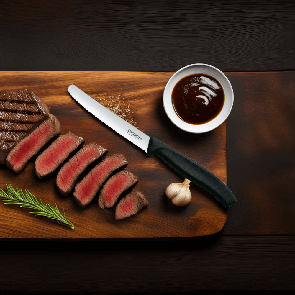 GKÖCH sử dụng chất liệu thép không gỉ đạt chuẩn Châu Âu, cho độ bền vượt trội và chống ăn mòn hiệu quả. Dù tiếp xúc thường xuyên với nước hay thực phẩm có độ axit cao, dao vẫn giữ được độ sáng bóng và bền đẹp theo thời gian.