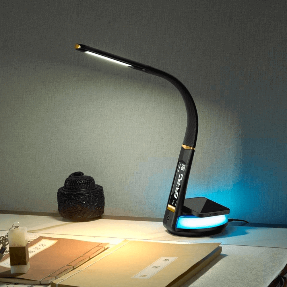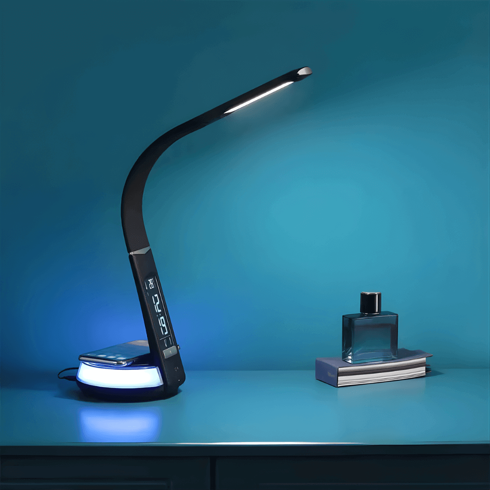 Đèn được tích hợp thêm chức năng sạc không dây cho Smartphone bên cạnh các chức năng có trên các dòng sản phẩm trước đây như: Đèn bàn với đồng hồ báo thức, lịch, thời gian và hiển thị nhiệt độ với nhiều mức độ ánh sáng khác nhau.