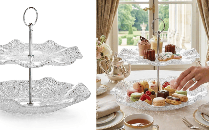Sở hữu thiết kế phong cách Ý tinh tế với họa tiết pha lê bất đối xứng độc đáo, đĩa 2 tầng IVV 9033.1 tạo hiệu ứng ánh sáng lấp lánh và điểm nhấn sang trọng cho bàn tiệc. Kết cấu 2 tầng đường kính 24.5cm giúp tối ưu không gian trưng bày bánh ngọt, trái cây, món khai vị. Kiểu dáng hài hòa giữa hiện đại và cổ điển, phù hợp nhiều phong cách nội thất, sử dụng linh hoạt hằng ngày hoặc trong các bữa tiệc.