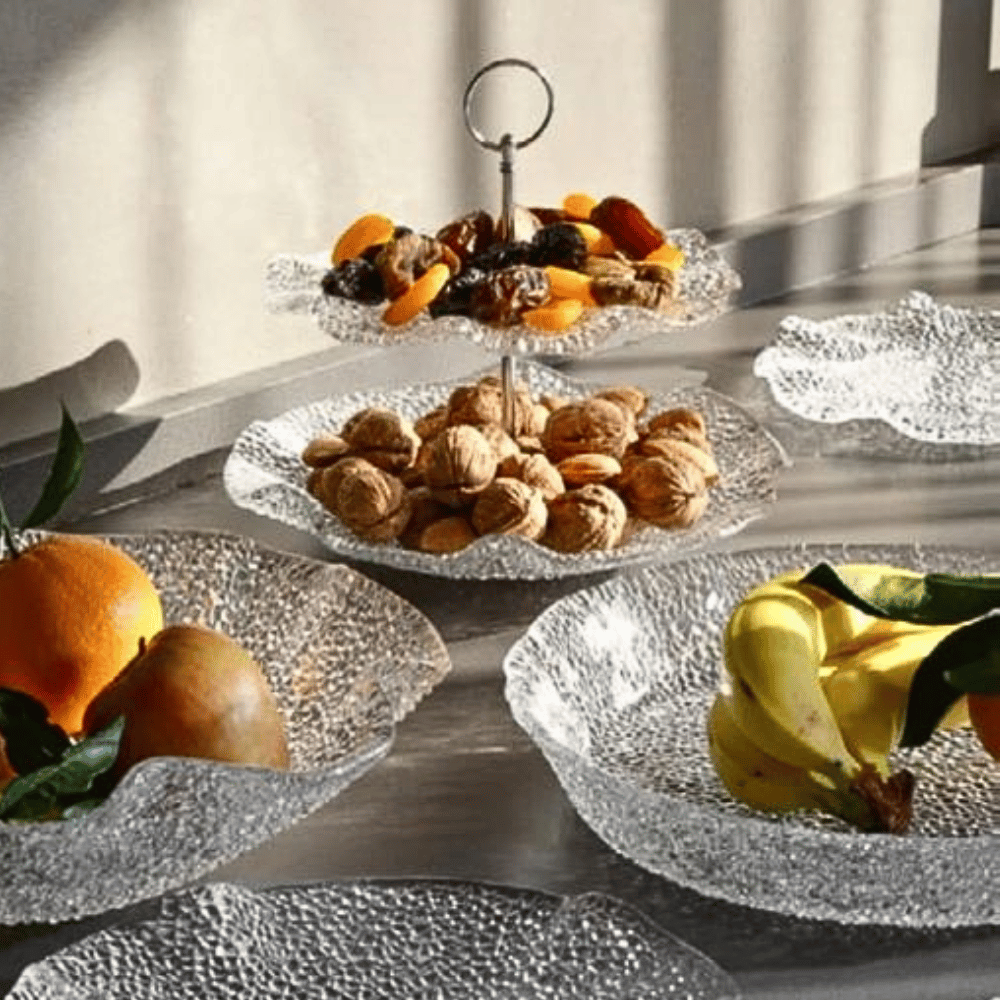 Đĩa 2 tầng IVV 9033.1 sử dụng pha lê không chì (lead-free crystal) – an toàn tuyệt đối cho sức khỏe, phù hợp tiếp xúc trực tiếp với thực phẩm. Chất liệu này vẫn giữ được độ trong suốt, khả năng khúc xạ ánh sáng và độ cứng cao như pha lê truyền thống, đồng thời loại bỏ hoàn toàn nguy cơ nhiễm chì.