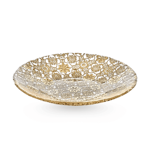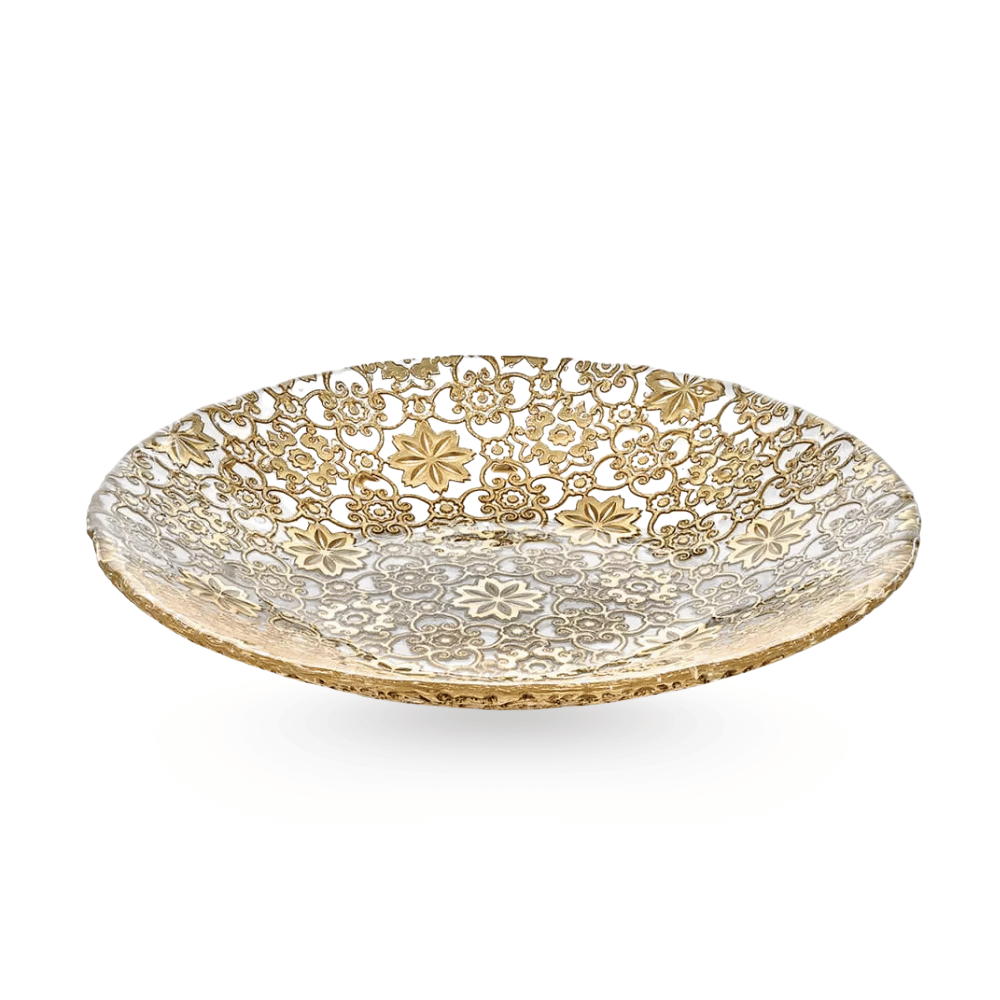 Đĩa Arabesque Centrepiece Gold Leaf 41cm IVV 7402.2 là tuyệt phẩm nghệ thuật của IVV, nổi bật với hoạ tiết “lá vàng” được tạo tác bằng công nghệ ép thủy tinh tinh xảo.