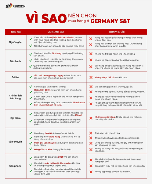 Hoặc Quý khách có thể đến trải nghiệm trực tiếp sản phẩm tại hệ thống showroom của Germany S&T trên toàn quốc.
