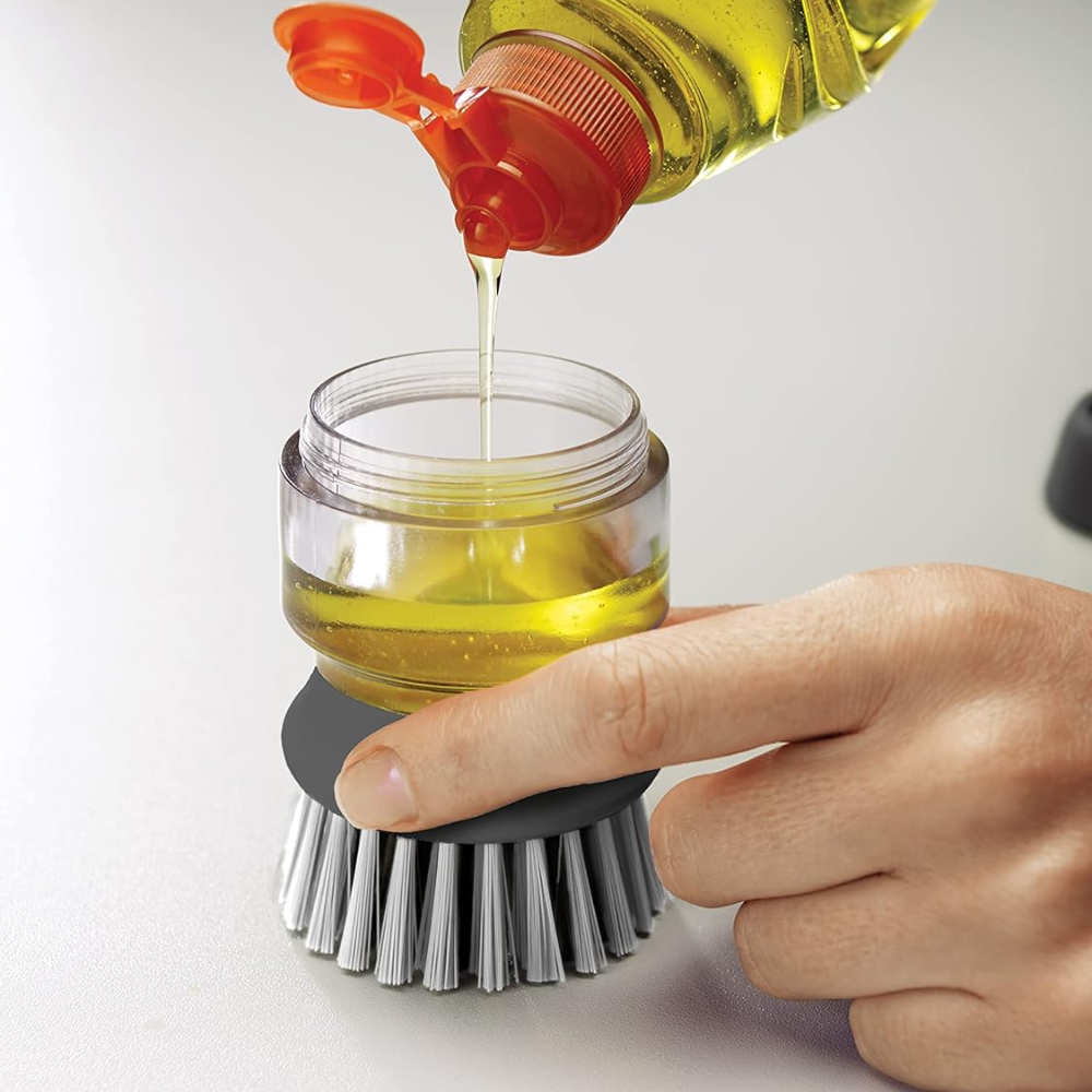 Hợp lý hóa bồn rửa của bạn với thiết kế gọn gàng, nhỏ gọn của bàn chải cọ rửa thông minh Joseph. Bàn chải rửa bằng lòng bàn tay chắc chắn này có một ngăn chứa chất lỏng rửa dễ đổ đầy giúp phân phối lượng xà phòng cần thiết chỉ bằng một lần nhấn nút trên cùng.