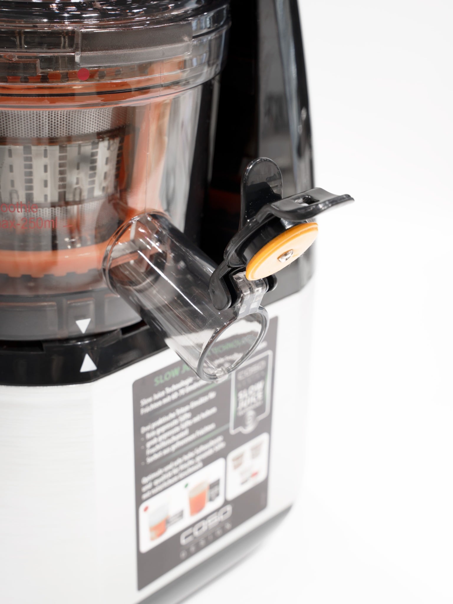 Máy ép chậm Caso được trang bị thêm 3 bộ lọc thay thế là ép mịn, ép thô và làm kem trái cây Sorbet đáp ứng được các nhu cầu sử dụng khác nhau của bạn Với chế độ ép mịn, bộ lọc sẽ lọc sạch phần bã thừa, trả lại phần nước nguyên chất tự nhiên.