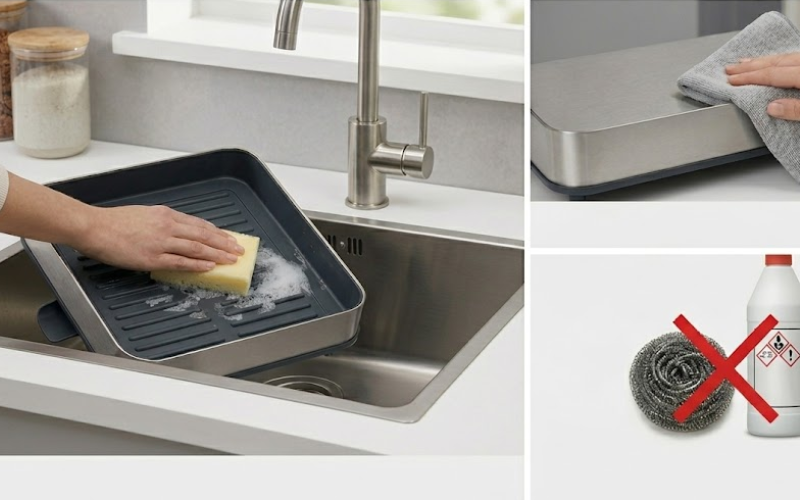 Chỉ nên rửa và lau khô bằng tay sau khi sử dụng để duy trì chất lượng thép tốt nhất.