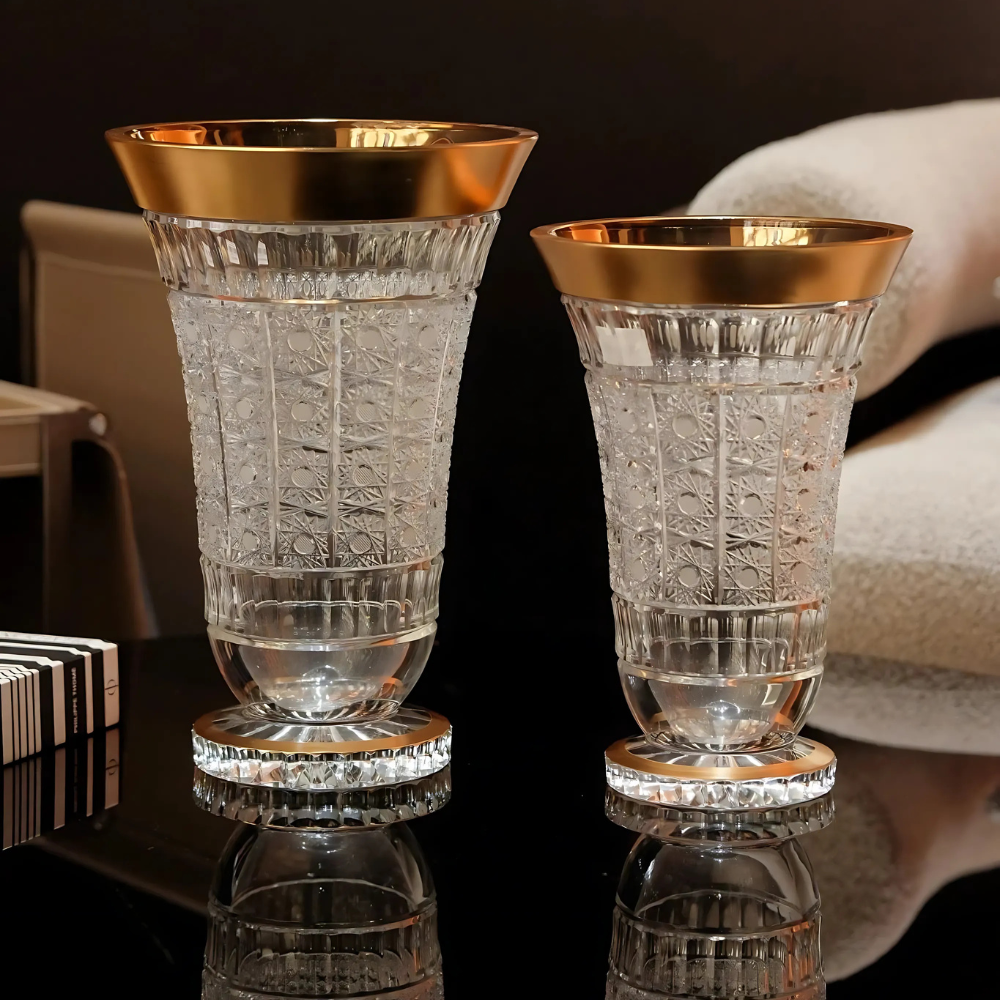 ->Khám phá thêm: Các mẫu lọ hoa pha lê chân đế tròn khảm vàng khác của Arcade