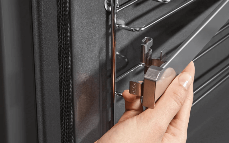Khác biệt với các lò nướng thông thường chỉ có tối đa ba vị trí cho rãnh nướng, BOSCH HBA5570S0B cung cấp hệ thống thanh ray dạng ống lồng độc lập, có thể tháo lắp dễ dàng ở tất cả các rãnh. Từ đó mang lại sự linh hoạt và tiện lợi tuyệt vời khi nướng nhiều món ăn cùng lúc, đặc biệt là khi bạn cần di chuyển khay nướng hoặc vỉ nướng mà không lo bị đổ hoặc tràn.