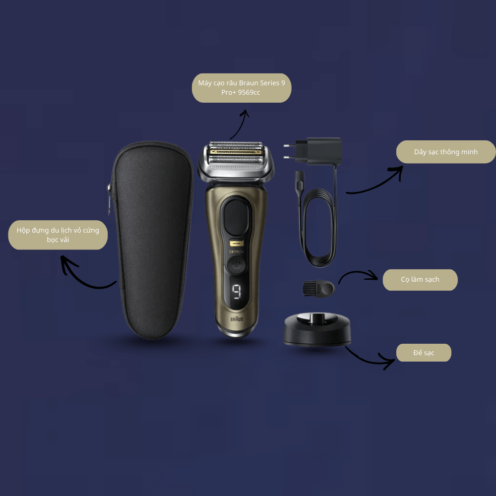 Kế thừa trọn vẹn tinh thần đó, Máy cạo râu BRAUN Series 9 Pro+ 9519s là đỉnh cao công nghệ cạo râu của hãng, nổi bật với phiên bản giới hạn màu vàng đồng sang trọng, sản xuất Made in Germany. Sản phẩm không chỉ gây ấn tượng bởi thiết kế đẳng cấp, mà còn bởi hiệu năng mạnh mẽ với hệ thống cạo tiên tiến, xử lý hiệu quả cả râu cứng và râu khó cạo, xứng đáng là lựa chọn hàng đầu cho phái mạnh yêu cầu sự hoàn hảo.