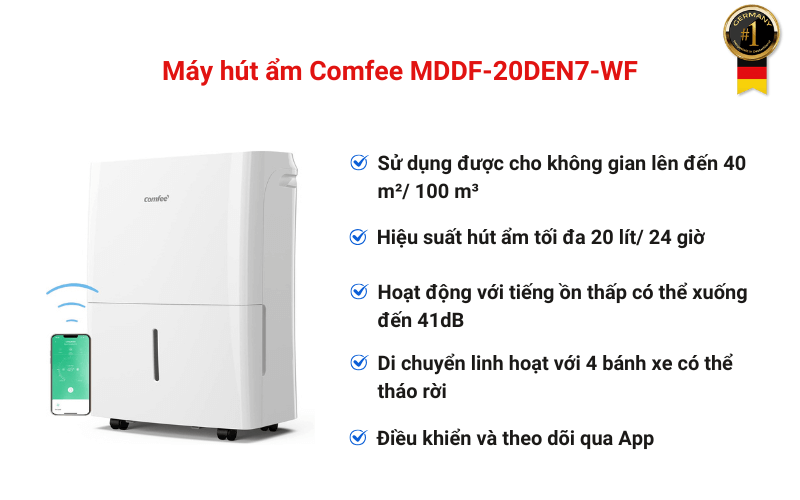 Máy hút ẩm Comfee MDDF-20DEN7-WF sẽ là trợ thủ hữu ích giúp duy trì độ ẩm lý tưởng và nâng cao chất lượng không khí trong không gian sống, mang lại sự tiện nghi và thoải mái cho gia đình. Với công nghệ tiên tiến, khả năng vận hành ổn định và thiết kế sang trọng, đây chắc chắn là lựa chọn đáng cân nhắc cho những ai đang tìm kiếm một giải pháp kiểm soát độ ẩm toàn diện, đáp ứng tiêu chuẩn cao cấp trong từng chi tiết. Đặt hàng ngay tại Germany S&T để sở hữu mức giá tốt nhất!
