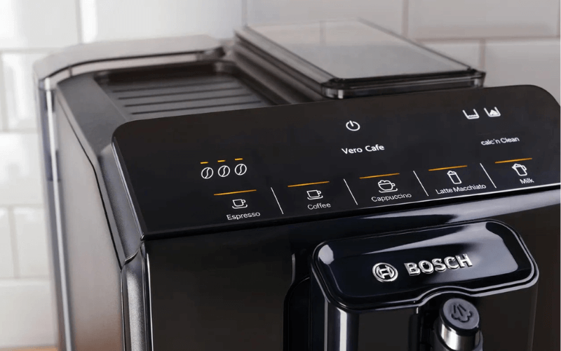 Máy pha cà phê Bosch TIE20119 sở hữu thiết kế hiện đại, thanh lịch với tông màu đen chủ đạo, kết hợp tinh tế với các chi tiết màu bạc, mang lại vẻ ngoài sang trọng, phù hợp với mọi không gian bếp.