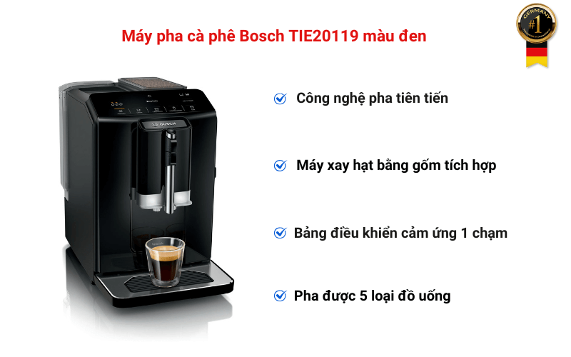 Từ những thiết bị gia dụng như tủ lạnh, máy giặt, đến các dụng cụ điện cầm tay và linh kiện ô tô, sản phẩm của BOSCH luôn được người tiêu dùng tin tưởng bởi độ bền vượt trội và hiệu suất tối ưu. Và Máy pha cà phê Bosch TIE20119 là một minh chứng hoàn hảo, khi kết hợp giữa công nghệ pha chế tự động và chất lượng cà phê đỉnh cao, biến mỗi tách cà phê tại nhà thành một tác phẩm nghệ thuật. Germany S&T hân hạnh là đơn vị phân phối chính hãng và đáng tin cậy của BOSCH tại Việt Nam.