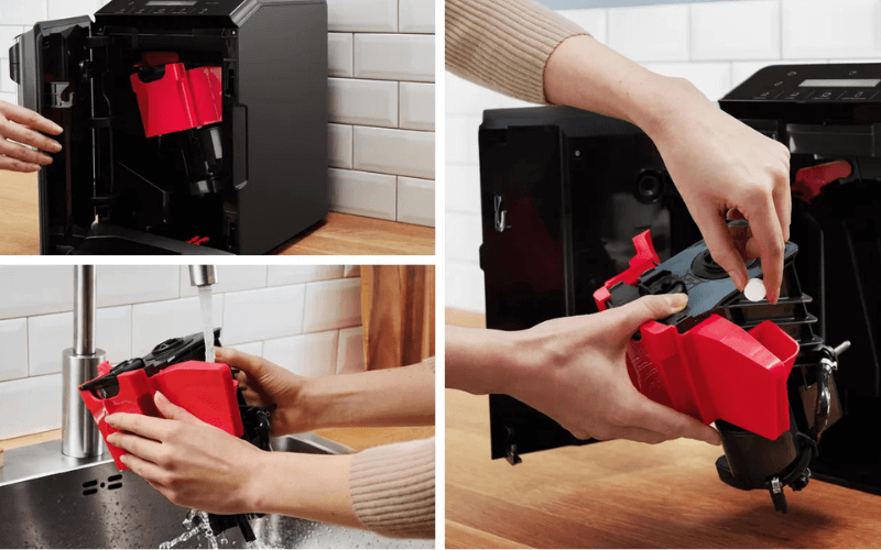 Cụm pha có thể tháo rời: Toàn bộ cụm pha có thể tháo rời và vệ sinh dưới vòi nước, giúp làm sạch kỹ lưỡng và đảm bảo chất lượng cà phê.