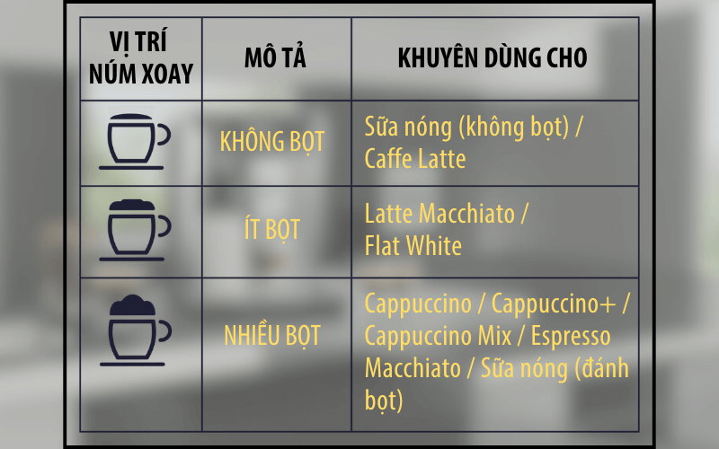 Đặc biệt, trên nắp bình đánh sữa còn tích hợp một núm xoay điều chỉnh, cho phép bạn lựa chọn kết cấu của bọt sữa theo ý thích hoặc theo loại đồ uống.