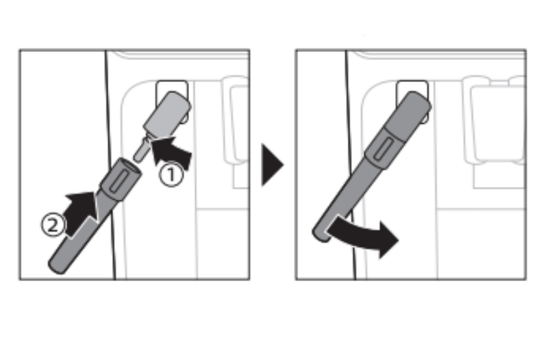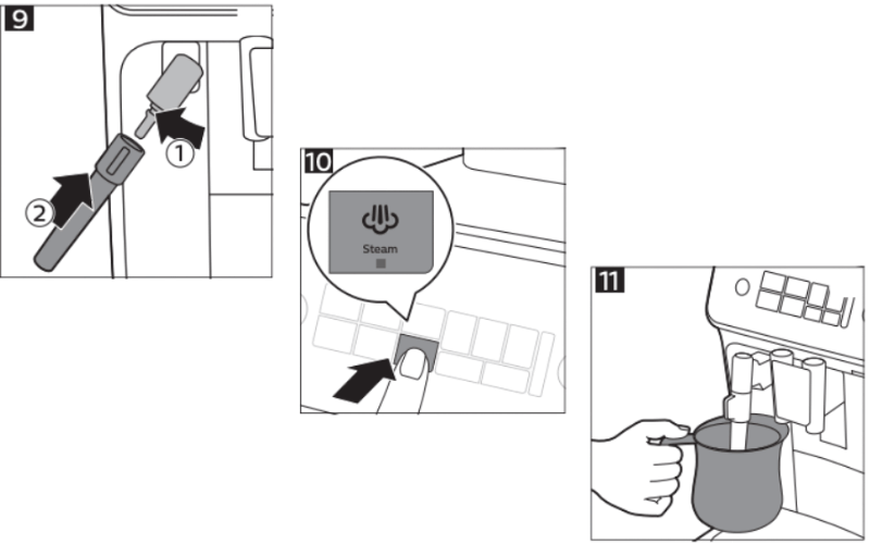 Xoay phần gạt bằng silicon màu đen trên máy pha cà phê sang trái và gắn vòi đánh sữa vào đó (hình 9)