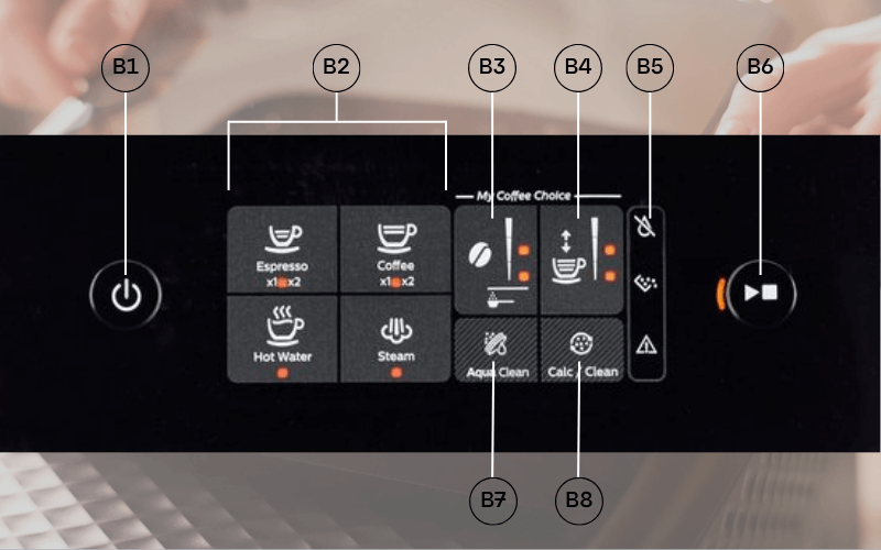 - Nếu đèn trong biểu tượng cà phê không sáng sau khi bạn nhấn giữ biểu tượng đó, tiếng bíp của bảng điều khiển đã bị tắt. Để kích hoạt lại chạm vào biểu tượng Coffee một lần nữa và nhấn nút Start/Stop để xác nhận.