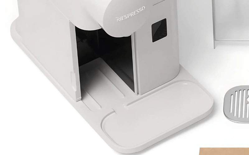 Khay hứng nước tháo rời: Khay hứng nước là chi tiết quan trọng trong việc hứng nước và cà phê thừa, giữ cho khu vực pha chế luôn sạch sẽ. Khay hứng nước của máy pha cà phê viên nén Nespresso De'Longhi EN510.W cũng có thể tháo rời dễ dàng, cho phép người dùng nhanh chóng vệ sinh và lắp đặt lại mà không mất nhiều công sức. Ngoài ra, với chất liệu bền bỉ và bề mặt trơn nhẵn, khay hứng nước không chỉ đảm bảo độ bền lâu dài mà còn giữ được vẻ thẩm mỹ tinh tế sau thời gian dài sử dụng.