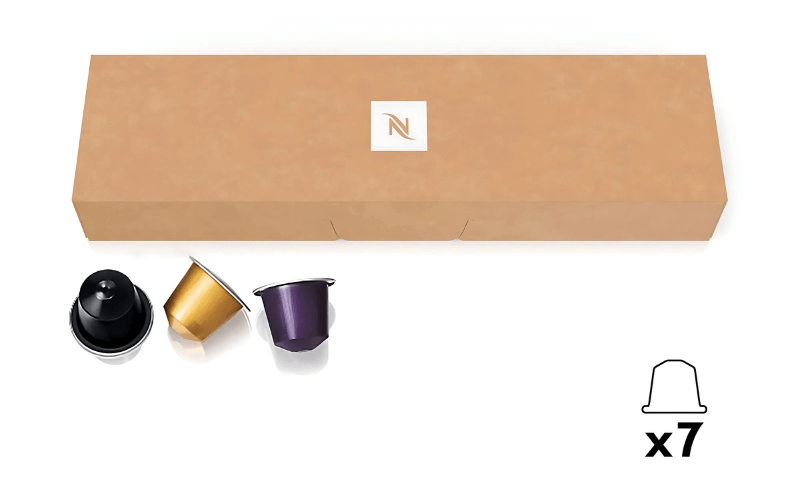 Máy pha cà phê viên nén Nespresso De'Longhi EN510.W đi kèm với 7 viên nén Nespresso với các hương vị khác nhau, mang đến những trải nghiệm cà phê đa dạng.