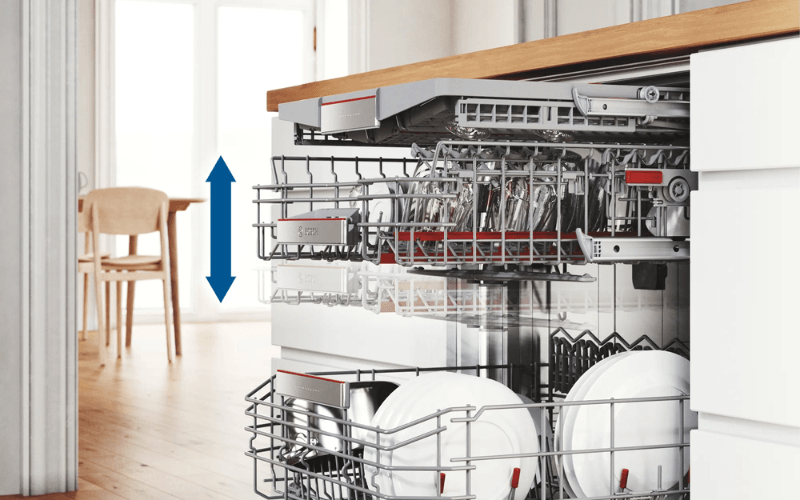 Hệ thống nâng hạ Triple Rackmatik (Điều chỉnh 3 nấc): RackMatic là một cơ chế đặc biệt cho phép bạn điều chỉnh chiều cao của giỏ trên theo 3 cấp độ với khoảng chênh lệch lên tới 5 cm.