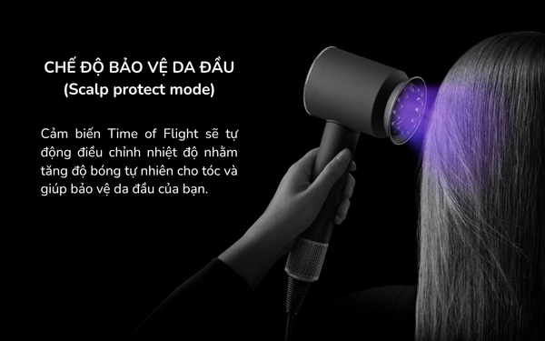 Nhờ cảm biến Time of Flight, máy liên tục đo khoảng cách giữa đầu máy và da đầu để tự động điều chỉnh nhiệt độ và tốc độ gió phù hợp. Tính năng này giúp bảo vệ da đầu khỏi cảm giác nóng rát khi sấy gần, đồng thời giảm nguy cơ khô da đầu, rụng tóc và kích ứng. Mái tóc được chăm sóc tận gốc, từ sợi đến chân tóc, mang lại cảm giác dễ chịu và thư giãn mỗi lần sử dụng.