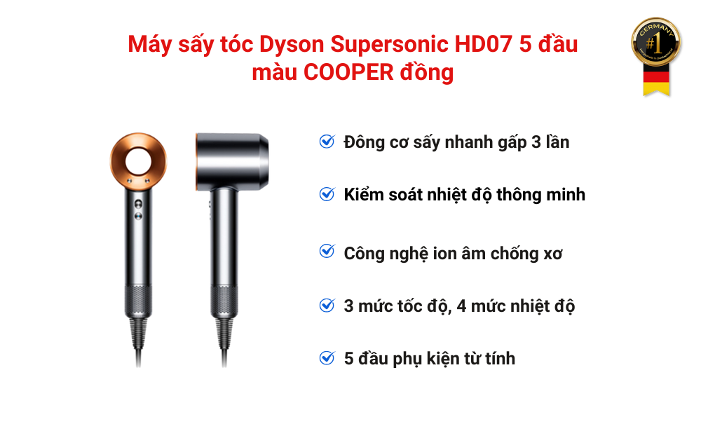 Máy sấy tóc Dyson Supersonic HD07 5 đầu màu COOPER đồng