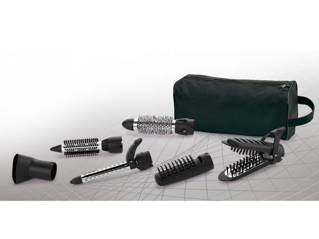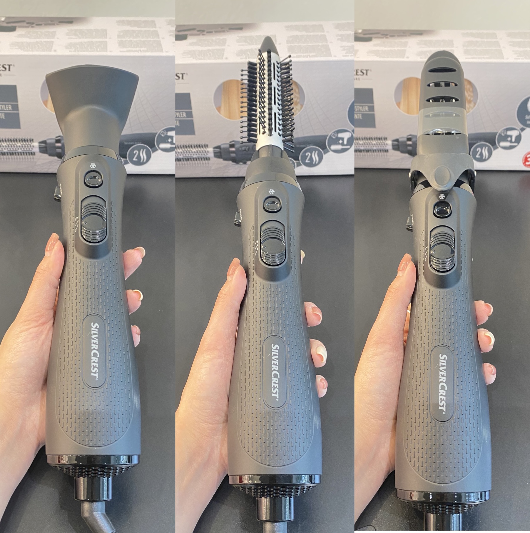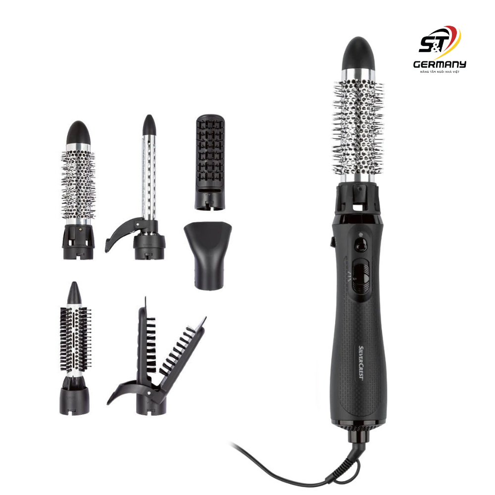 Máy uốn tóc SILVERCREST Profi SWC 1000 D1 màu đen kèm theo 6 phụ kiện bạn có thể linh hoạt trong việc hoán đổi đầu sấy tạo kiểu. Tuỳ theo ý thích của bạn với 6 đầu sấy khô và tạo kiểu bạn có thể chủ động linh hoạt thay đổi đầu sấy để sấy tạo kiểu. Với 6 phụ kiện đầu sấy kèm theo bạn có thể tạo các kiểu tóc như: tạo phồng chân tóc, tóc thẳng, tóc xoăn lơi,… theo ý muốn của bạn mỗi ngày. Mỗi ngày một phong cách với 6 đầu sấy tạo kiểu thay đổi linh hoạt.