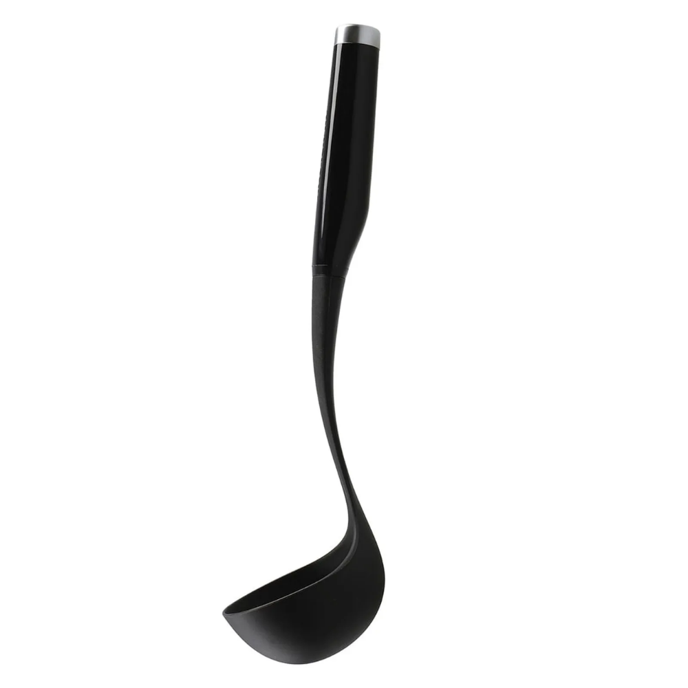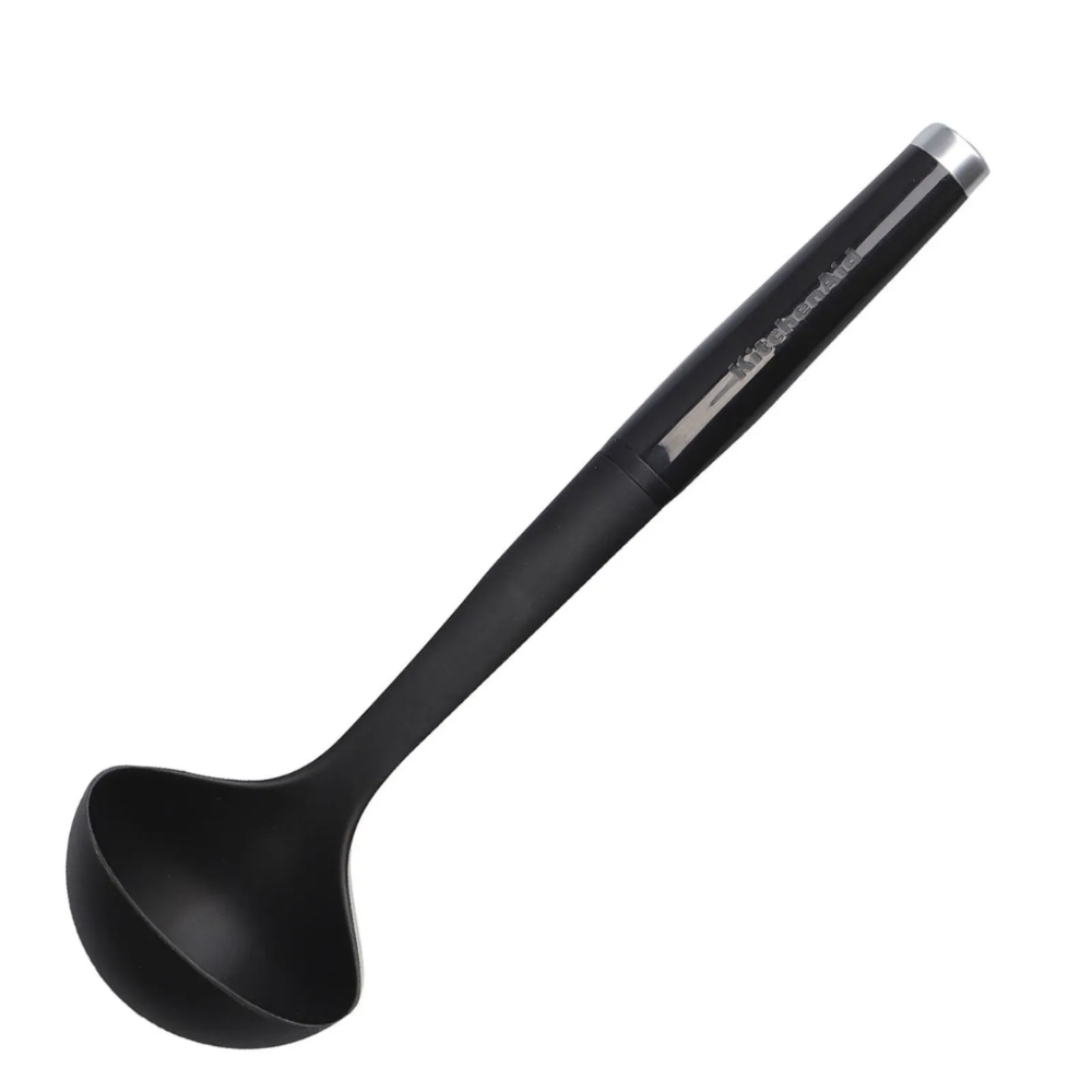 Muỗng múc canh KitchenAid màu đen KCG006OHOBE: Hiện diện với vẻ ngoài mạnh mẽ và đầy chuyên nghiệp. Sắc đen sâu thẳm không chỉ giúp hạn chế tối đa việc lộ các vết bám bẩn từ thực phẩm mà còn duy trì sự sạch sẽ, đẳng cấp cho bộ dụng cụ nấu nướng.