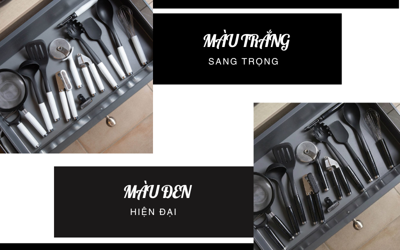 Bộ sưu tập KitchenAid KCG nổi bật với thiết kế hiện đại, tối giản cùng hai gam màu đen và trắng dễ dàng phù hợp với mọi không gian bếp. Danh mục sản phẩm đa dạng từ xẻng lật, muỗng, vá, phới đến dao và các dụng cụ hỗ trợ, đáp ứng đầy đủ nhu cầu nấu nướng hằng ngày.